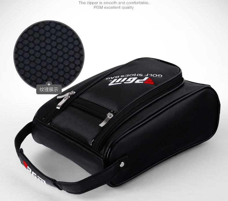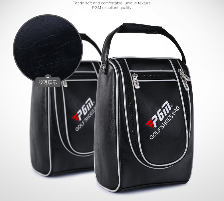 Túi Để Giầy Golf 02 được làm bằng chất liệu da PU chống thấm nước, chống bụi và dễ dàng làm sạch.